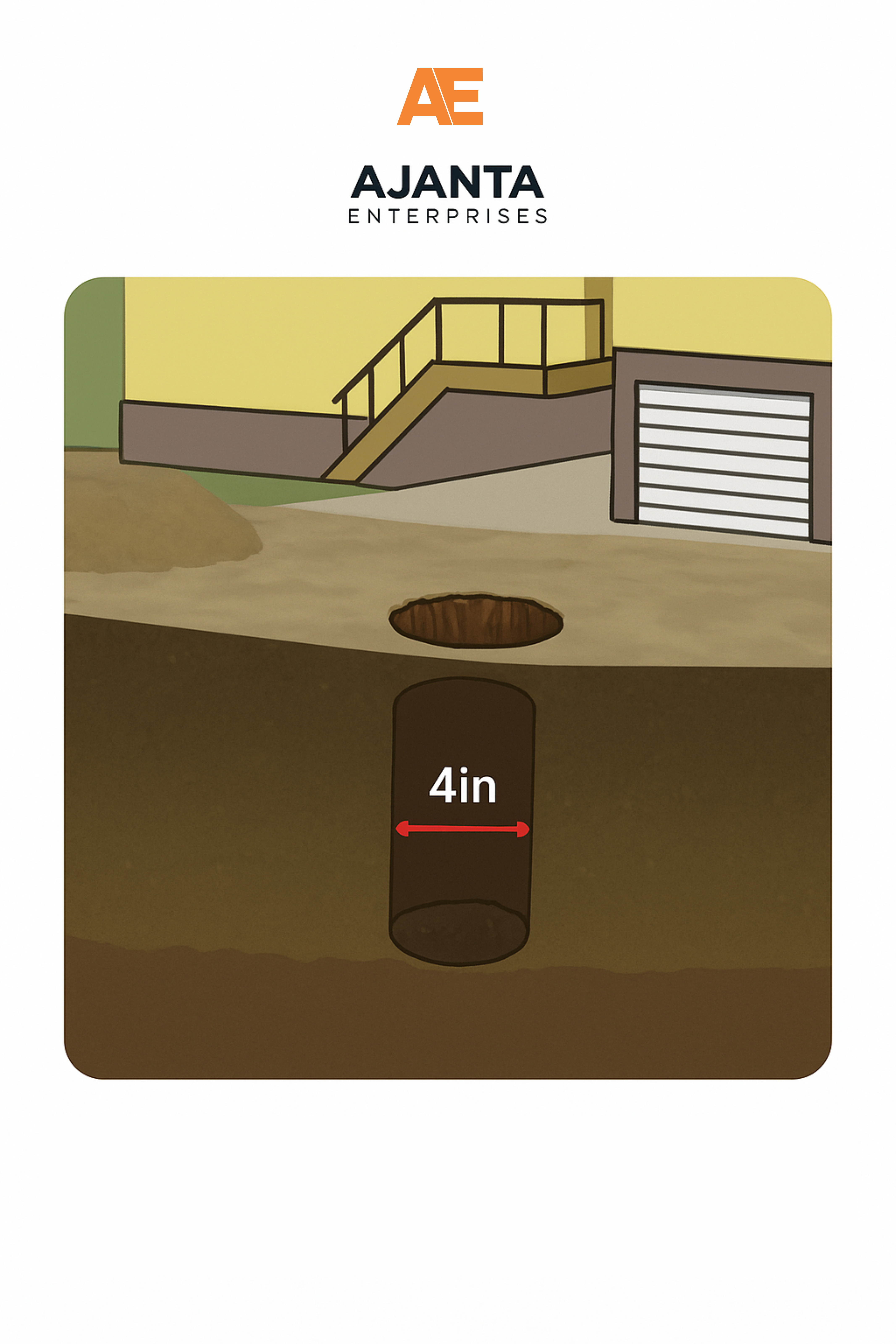 Step 2: Hole measurement: 4in diameter & 3 mtr depth